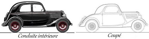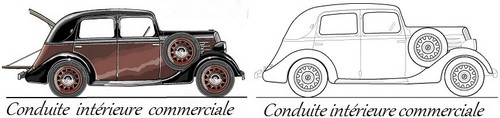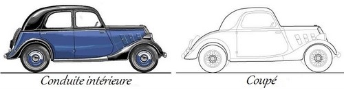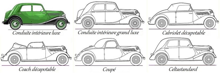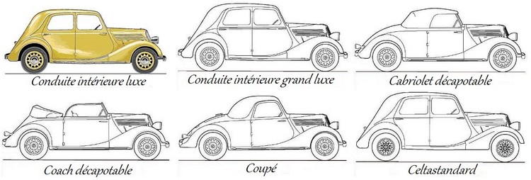 Type ADC1 (1936) en version berline luxe, berline grand luxe, cabriolet décapotable, coach décapotable, coupé et Celtastandard