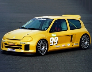 Utilisée aussi bien par l'équipe officielle Clio Team que par des équipes privées (61 véhicules vendus jusqu'à février 2005), la Clio Super 1600 est basée sur la Clio 1.6 16 V mais bénéficie d'une transformation compléte avec une puissance du moteur doublée par rapport à l'original pour être portée à 220 ch. |