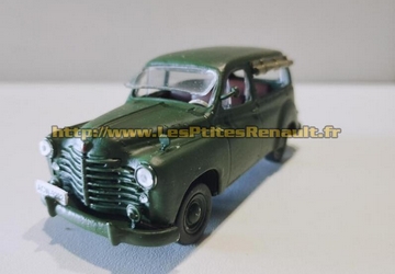 - Prototype réalisé en 1947 - Utilisation d'une caisse arrière en bois dur, ce qui permet d'économiser de l'acier et de simplifier l'outillage de fabrication. - Ce type de carrosserie n'est envisagé que comme un pis-aller dicté par les contingences du moment - Renault songe déjà à une carrosserie tout acier plus en phase avec le marché français, et les ravages des termites dans les colonies |