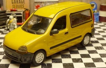 Points d'identification du Kangoo I phase 1 : - Son capot est lisse - Calandre en un seul morceau - Clignotants sous les phares avant - Logo Renault sur le capot |