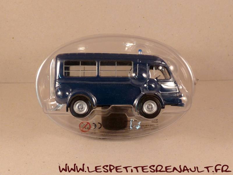 Modèle : 1000 Kg vitré Année : 1956 Couleur : Bleu marine Echelle : 1/43 Fabricant : Norev Référence 40 Collection : Police et Gendarmerie - (Hachette) Matière : Zamak, châssis plastique Série limité : Non Boitage : Blister + boite carton pliée Commentaires : Version Gendarmerie maritime |