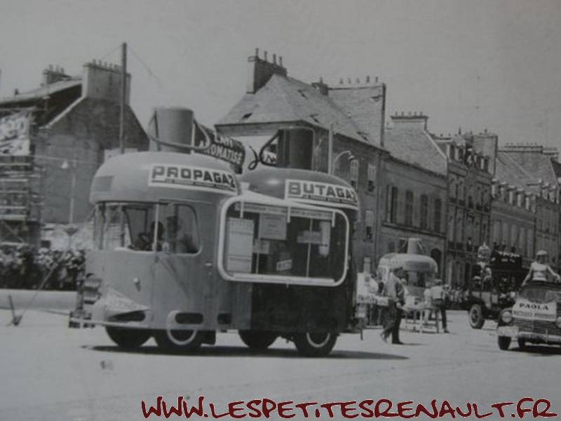 Modèle : 1400 Kg bi-bouteille Type : R2066 Année : 1954 Couleur : Bleu et orange Echelle : 1/43 Fabricant : Ixo Référence 7 Collection : Véhicules publicitaires (Auto Plus) Matière : Zamak et plastique Série limité : Non Boitage : Socle + Blister Commentaires : Modèle destiné au Tour de France entre 1954 et 1960. Véhicule avec les couleurs de la première série, d'autres véhicules similaires viendront ensuite mais avec des bouteilles en 2 tons de bleus. |