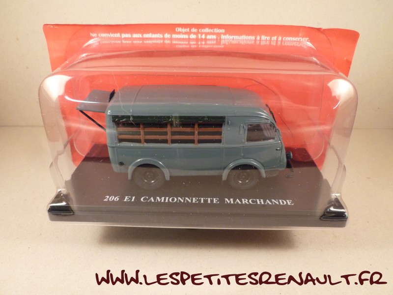 Modèle : 206 E1 Année : 1946 Couleur : Gris Echelle : 1/43 Fabricant : Ixo Référence : 48 Collection : Utilitaires Renault (Hachette) Matière : Zamak, châssis plastique Série limité : Non Boitage : Socle + Blister Commentaires : 1ère génération de 1000kg. Version camionnette marchande. |