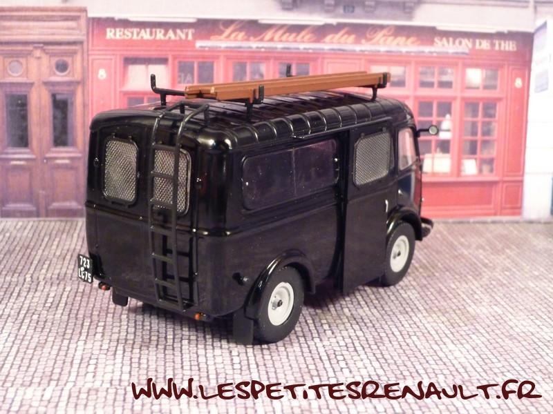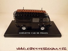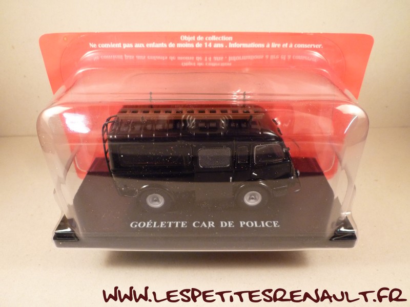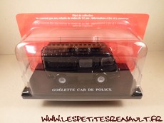 Modèle : Goélette vitrée Année : 1962 Couleur : Noir Echelle : 1/43 Fabricant : Ixo Référence : 46 Collection : Utilitaires Renault (Hachette) Matière : Zamak, châssis plastique Série limité : Non Boitage : Socle + Blister Commentaires : Version car de la Préfecture de Police de Paris. |