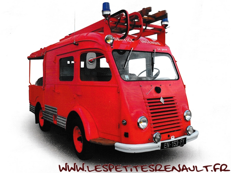 Renault type R 2086 Goélette (1400kg) 1960 VPI Picot des Sapeurs Pompiers de Moselle Il s'agit d'un des premiers modèles de véhicules équipés par les établissement Picot installés à Pommard en Bourgogne qui jusque là ne faisaient que de la fabrication d'extincteurs et de matériel de lutte contre les incendies Ils créent alors un kit d'adaptation composé d'une pompe Berthoud, d'une tonne à eau (de 300 à 600 litres) ainsi que d'un ou deux dévidoirs fixes ou mobiles qui seront montés sur des Goélettes R2086 réformées par EDF. |