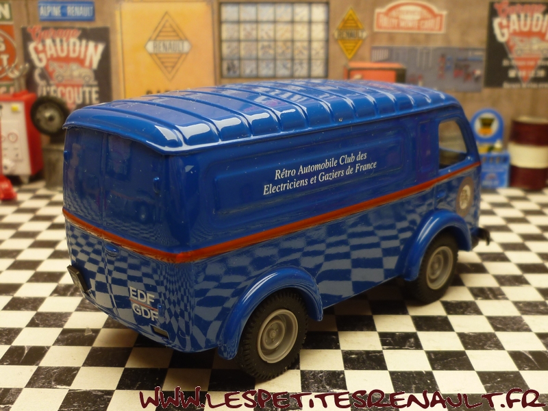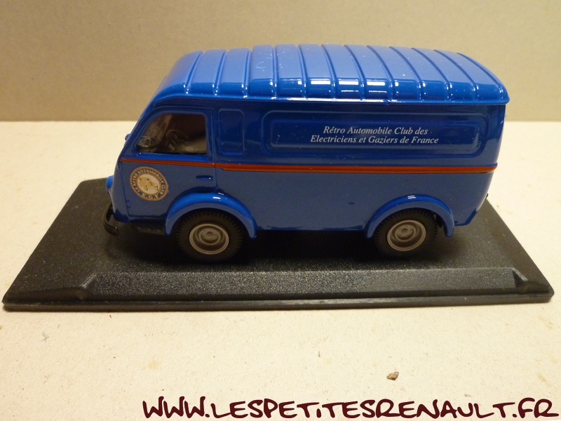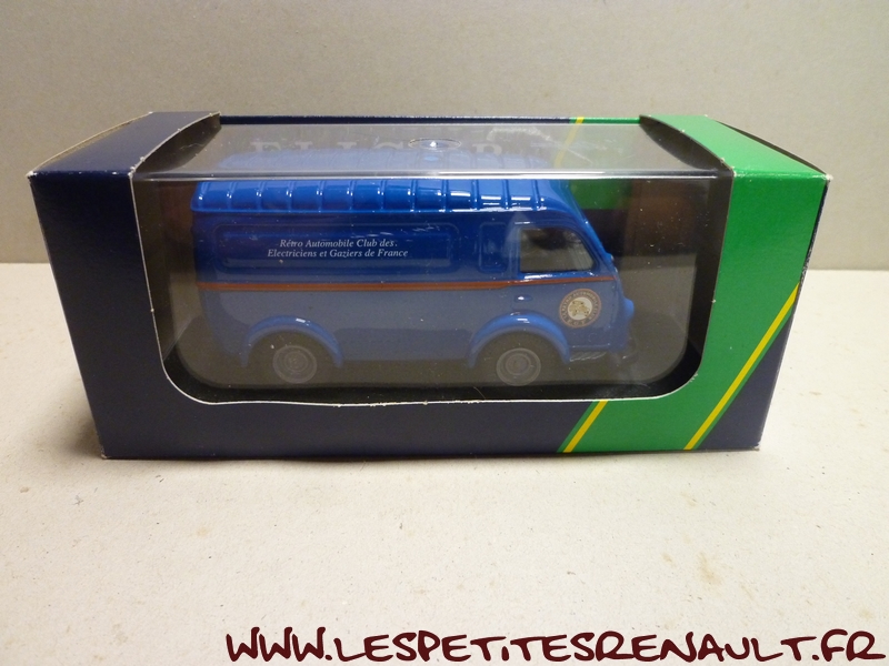 Modèle : 1000 kg tôlé Année : 1952 Couleur : Bleu Echelle : 1/43 Fabricant : Eligor Référence : 100817 Collection : RAC-EGF Matière : Zamak, châssis plastique Série limitée : Oui Boitage : Boite cristal + surboite Commentaires : Miniature créée pour le RAC-EGF (Retro Automobile Club des Electriens et Gaziers de France) pour leur AG 2001 |