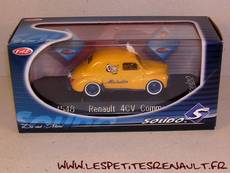 Modèle : 4 cv commerciale Année : 1954 Couleur : Jaune Echelle : 1/43 Fabricant : Solido Référence : 4548 Collection : Solido Sixties Matière : Zamak Série limitée : Non Boitage : Boite cristal 6x15, surboite Sixties Commentaires : Modèle anachronique et imaginaire. Pas de commerciales en version 3 moustaches, et aucune photo du modèle à l'échelle 1 |