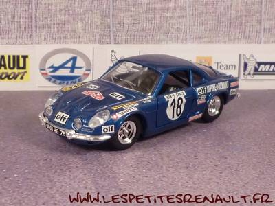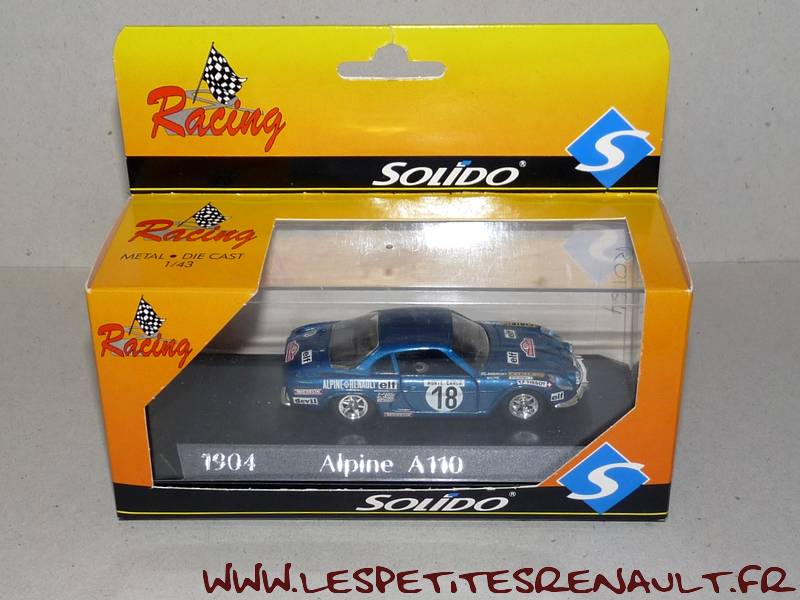 Modèle : Alpine A 110 1600 S Année : 1973 Course : Monte-Carlo Equipage : #18 - Andruet / Biche Couleur : Bleu Echelle : 1/43 Fabricant : Solido Référence : 1904 Collection : Solido Racing Matière : Zamak, châssis plastique Série limité : Non Boitage : Boite cristal 6x15, surboite Solido Racing Commentaires : |