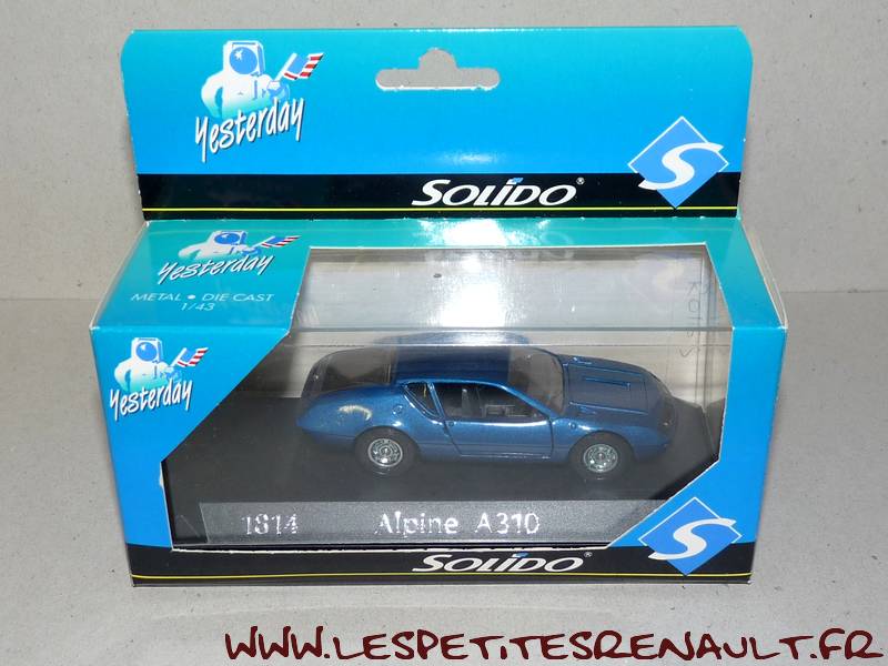 Modèle : Alpine A 310 1600 Année : 1972 Couleur : Bleu métallisé Echelle : 1/43 Fabricant : Solido Référence : 1814 Collection : Solido Yesterday Matière : Zamak, châssis plastique Série limité : Non Boitage : Boite cristal, surboite Solido Yesterday Commentaires : -- |
