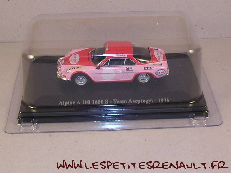 Modèle : Alpine A 110 1600 S Année : 1971 Course : Présentation Car Equipage : -- Couleur : Rose et rouge Echelle : 1/43 Fabricant : Universal Hobbies Référence : 7 Collection : Alpines et Renault sportives (Hachette) Matière : Zamak, châssis plastique Série limité : Non Boitage : Socle + blister Commentaires : Décoration Aseptogyl |