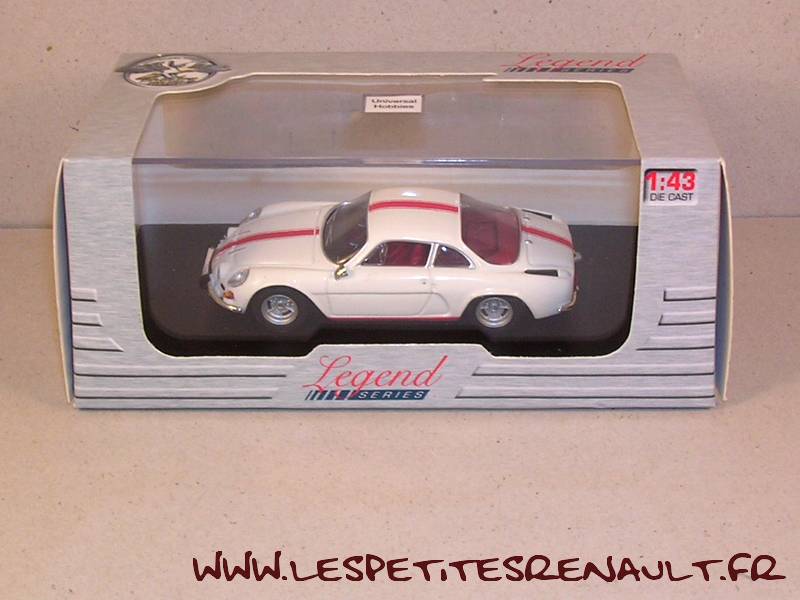 Modèle : Alpine A 110 Année : 1973 Couleur : Blanche Echelle : 1/43 Fabricant : Universal Hobbies Référence : 4603 Collection : Legend Series Matière : Zamak, châssis plastique Série limité : Non Boitage : Boite cristal 7x14, surboite Eagles Commentaires : |