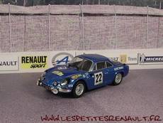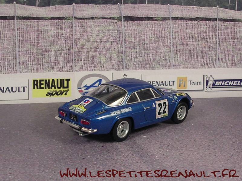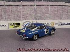 Modèle : Alpine A110 1600 S Année : 1971 Course : Coupe des Alpes Equipage : #22 Vinatier/Pointet Couleur : Bleu métallisé Echelle : 1/43 Fabricant : Eligor Référence : 13 Collection : Alpines et Renault sportives (Hachette) Matière : Zamak, châssis plastique Série limité : Non Boitage : Socle + blister Commentaires : La coupe d'or des Alpes sera attibuée à Jean Vignatier après ses victoires en 1968, 1969 et 1971 |