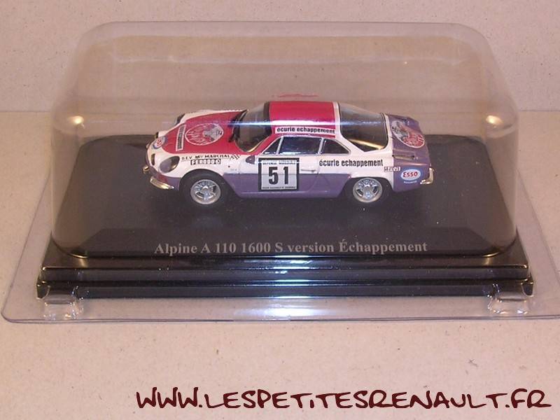 Modèle : Alpine A 110 1600S Année : 1973 Course : Ronde hivernale de Chamonix Equipage : #51 - Michel Jullien Couleur : Rouge, blanc et violet Echelle : 1/43 Fabricant : Eligor Référence : 15 Collection : Alpines et Renault sportives (Hachette) Matière : Zamak, châssis plastique Série limité : Non Boitage : Socle + blister Commentaires : |