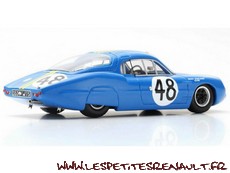 Modèle : Alpine M63 Année : 1963 Course : 24 heures du Mans Equipage : #48 - Rosinsky/Heins Couleur : Bleu Echelle : 1/43 Fabricant : Jielge Référence : 56BK Collection : Non Matière : Résine Série limité : Non Boitage : Boite carton Commentaires : Abandon à la 6ème heure sur accident |
