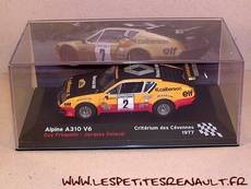 Modèle : Alpine A 310 V6 Année : 1977 Course : Critérium des Cévennes Equipage : #2 - Frequelin/Delaval Couleur : Jaune et noir Echelle : 1/43 Fabricant : Ixo Référence : 6 Collection : Champions français de rallye (Altaya) Matière : Zamak, châssis plastique Série limité : Non Boitage : Boite cristal 7x15 Commentaires : -- |