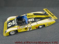 Modèle : Alpine A 442 Année : 1977 Course : 24 heures du Mans Equipage : #7 - Jaussaud/Tambay Couleur : Jaune et noire Echelle : 1/43 Fabricant : Mini Racing Référence : 0013 Collection : Non Matière : Zamak Série limité : Non Boitage : Boite carton Commentaires : Abandon à la 14ème heure |
