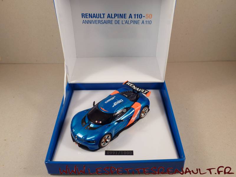 Modèle : Alpine A 110-50 Année : 2012 Couleur : Bleue métallisé Echelle : 1/43 Fabricant : Norev Référence : 7711575565 Collection : Non Matière : Zamak, châssis plastique Série limité : 991/1000 Boitage : Boite carton 13x13 Commentaires : Présentée au Grand Prix de Monaco 2012 pour fêter les 50 ans de l'Alpine A110 |