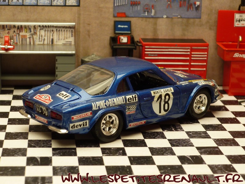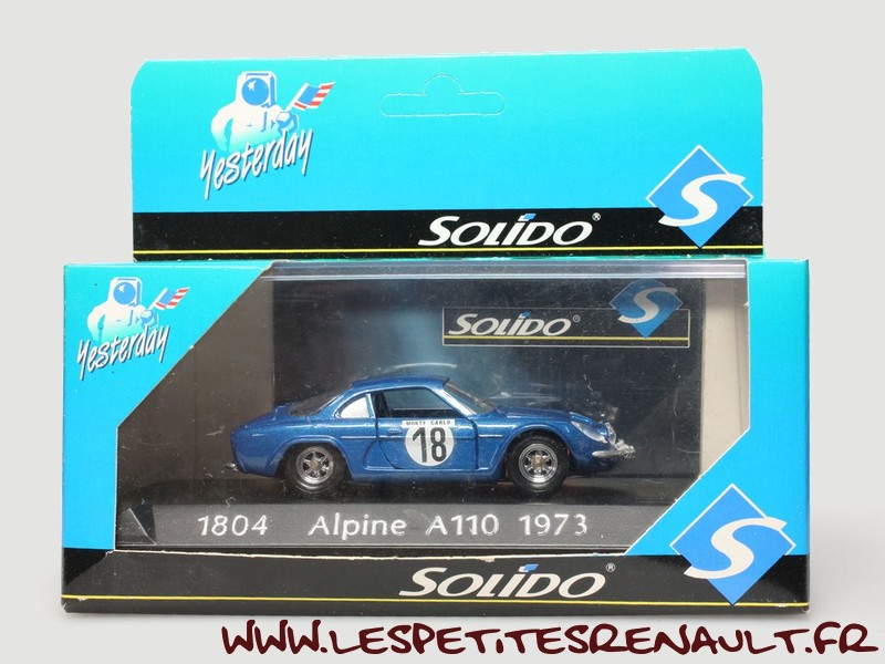 Modèle : Alpine A 110 1600 S Année : 1973 Course : Monte-Carlo Equipage : #18 - Andruet / Biche Couleur : Bleu Echelle : 1/43 Fabricant : Solido Référence : 1804 Collection : Solido Yesterday Matière : Zamak, châssis plastique Série limité : Non Boitage : Boite cristal 6x15 + surboite Yesterday Commentaires : Surboite absente. Modèle similaire à la référence 1904 de la série Racing. |
