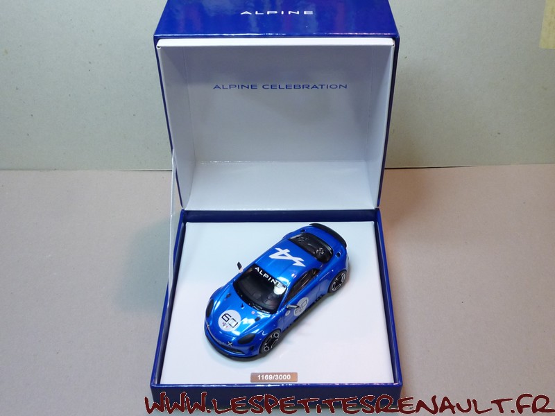 Modèle : Alpine Célébration Année : 2015 Couleur : Bleu métalisé Echelle : 1/43 Fabricant : Norev Référence : 7711782401 Collection : Non Matière : Zamak, châssis plastique Série limité : 1169/3000 Boitage : Coffret carton Alpine Commentaires : Version avec la décoration utilisée pour la présentation au festival de GoodWood pour les 60 ans de la marque en septembre 2015 |