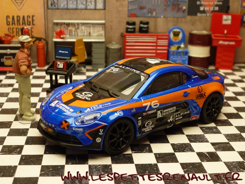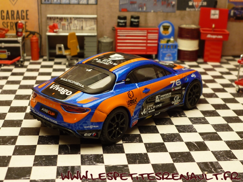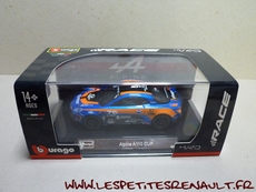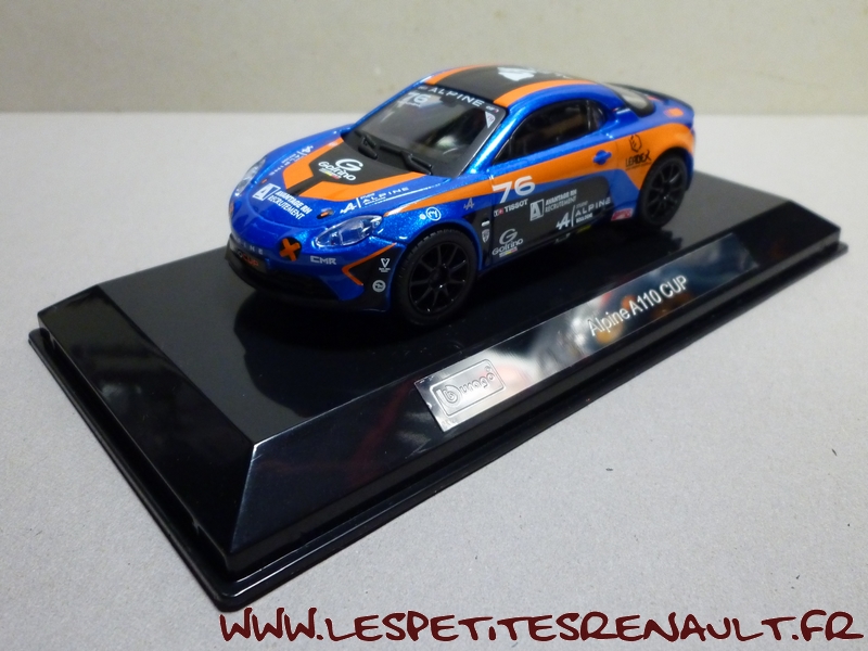 Modèle : Alpine A110 Année : 2018 Course : Alpine Europa Cup Equipage : #76 - P. Sancinena Couleur : Bleu métalisé et orange Echelle : 1/43 Fabricant : Bburago Référence : 18-38303 Collection : Race Matière : Zamak, châssis plastique Série limité : Non Boitage : Boite cristal 7x15 + surboite Commentaires : Modèle piloté par P Sancinena en 2018 dans le cadre de l'Alpine Europa Cup. |