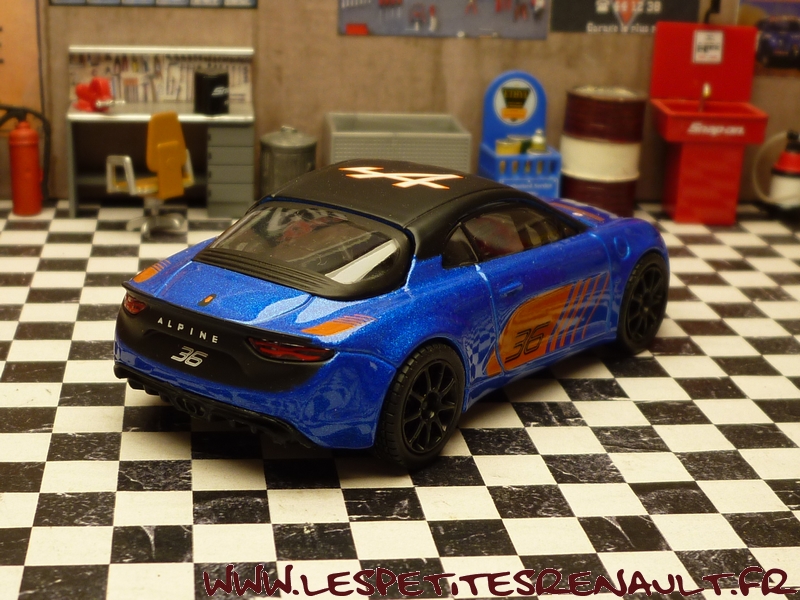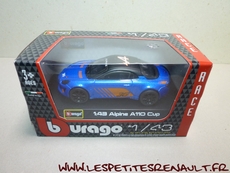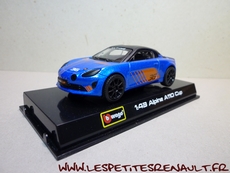 Modèle : Alpine A110 Année : 2018 Course : Alpine Europa Cup Equipage : #36 Couleur : Bleu métalisé Echelle : 1/43 Fabricant : Bburago Référence : 18-38010 Collection : Non Matière : Zamak, châssis plastique Série limité : Non Boitage : Boite carton + plastique Commentaires : Version présentation utilisée en 2018 dans le cadre de l'Alpine Europa Cup. |