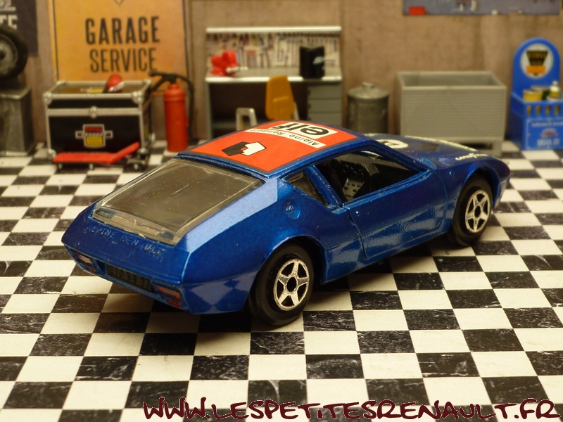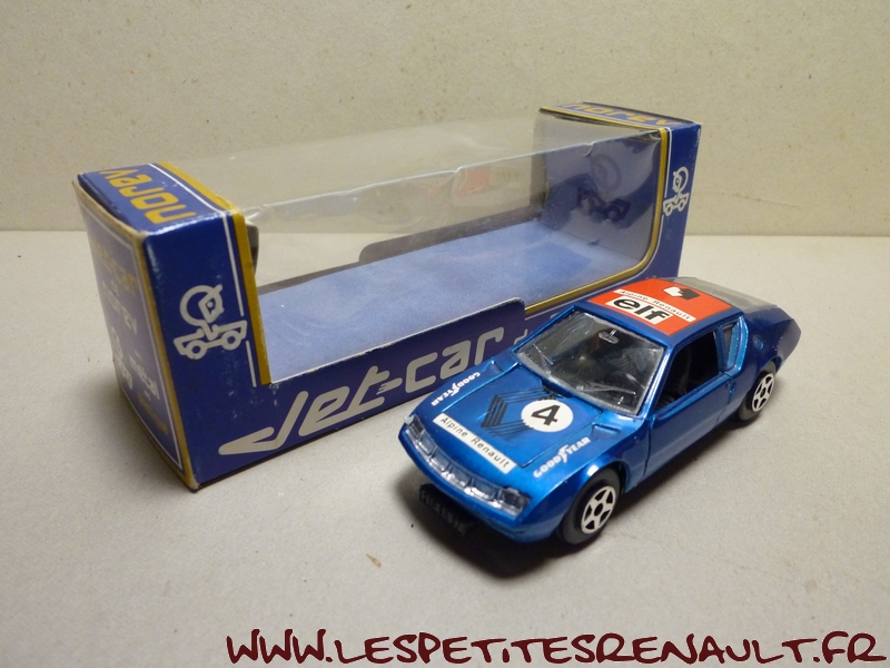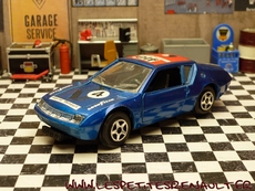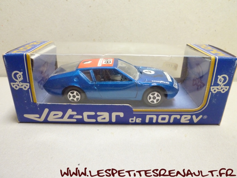 Modèle : Alpine A 310 1600 Année : 1972 Couleur : Bleu métallisé Echelle : 1/43 Fabricant : Norev Référence : 855 Collection : Jetcar - Série P Matière : Zamak, châssis plastique Série limitée : Non Boitage : Boite carton + cristal Commentaires : Décoration rallye imaginaire |