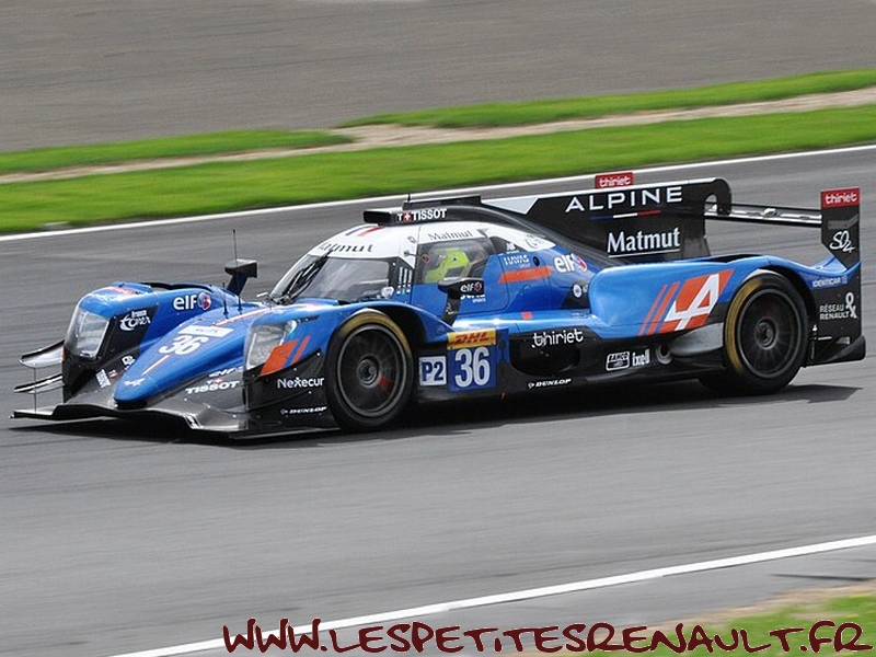 Le Mans - Alpine A470 - 2018 En juin 2018, L'alpine A 470 se verra attribuée la victoire en catégorie LMP2 apràs le déclassement des écuries TDS Racing et G-Drive Racing qui seront déclarées non conformes à l'arrivée. Fiche technique MOTEUR : Gibson GK-428 de 4 169 cm3, 8 cylindres en V à 90°, distribution à 2 ACT par banc et 4 soupapes par cylindre, alimentation à injection électronique, graissage à carter sec, refroidissement par liquide, puissance maximale 603 ch à 9 000 tr/min. Poids du moteur 135 kg. SUSPENSIONS : Avant et arrière à doubles bras oscillants, bras de réaction et combinés amortisseurs. FREINS : à disque ventilé en carbone avec étrier à six pistons. ROUES : Jantes en magnésium de 18 pouces, pneus Dunlop. CHÂSSIS : Monocoque en fibre de carbone et nid d'abeille, carrosserie en Kevlar. TRANSMISSION : Roues arrière motrices, boîte de vitesses séquentielle à 6 rapports + MA dans un carter en magnésium, embrayage à sec. DIMENSIONS : Longueur : 4 745 mm. Largeur : 1 895 mm. Hauteur : 1 045 mm. Voies avant/arrière : 1 570/1 550 mm. Empattement : 3 045 mm. Poids : 930 kg. Capacité du réservoir d'essence : 75 litres. |