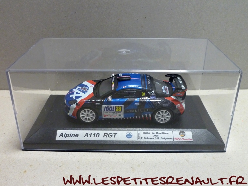 Modèle : Alpine A110 R-GT 16 Année : 2020 Course : Rallye du Mont Blanc Equipage : #38 Delecour-Guigonnet Couleur : Bleu métallisé Echelle : 1/43 Fabricant : TRF Créations Référence : RS.100 Collection : Non Matière : Zamak, châssis plastique Série limitée : 02/40 Boitage : Boite cristal Commentaires : Classée 17ème |