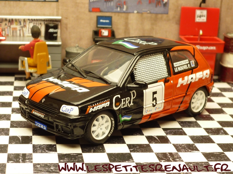 Modèle : Clio I 16S ph1 Année : 1991 Couleur : Rouge et noire Echelle : 1/43 Fabricant : Universal Hobbies Référence : 7711225848 Collection : Non Matière : Zamak, châssis plastique Série limitée : Non Boitage : Boite cristal 12x17 - Surboite Renault Sport Commentaires : Décoration Hafa. Réalisée pour les 50 ans de la marque en 2003 |