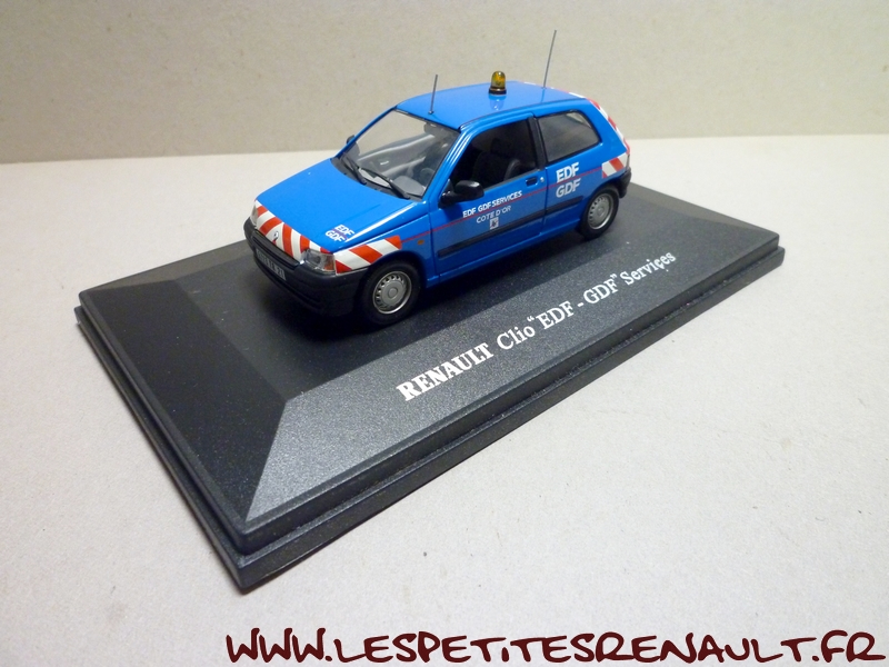 Modèle : Clio I phase 1 Année : 1990 Couleur : Bleu Echelle : 1/43 Fabricant : Universal Hobbies Référence : 2558 Collection : Non Matière : Zamak, châssis plastique Série limitée : Non Boitage : Boite cristal 9x15, surboite carton Commentaires : Décoration aux couleurs d'EDF-GDF Services |