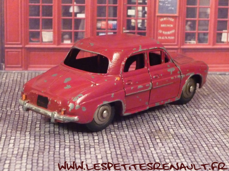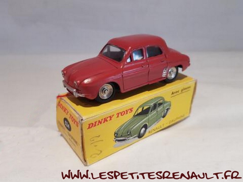 Modèle : Dauphine Année : 1957 Couleur : Rouge framboise Echelle : 1/43 Fabricant : Dinky Toys Référence : 24E Collection : Non Matière : Zamak, châssis tôle Série limitée : Non Boitage : Boite carton Commentaires : Edition originale. Première production 1957. Version sans vitre avec plaque avant de couleur noire et jantes convexes. |