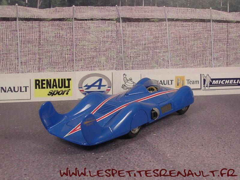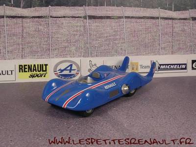 Modèle : Etoile Filante Année : 1956 Couleur : Bleue Echelle : 1/43 Fabricant : Elysée Référence : 7711223595 Collection : Non Matière : Résine Série limitée : Non Boitage : Boite cristal 12x17, surboite Renault Commentaires : Véhicule propulsé par une turbine à gaz Turbomeca de 270 chevaux qui établiera un record de vitesse terrestre de 308,85 km/h, le 5 septembre 1956 sur la piste de Bonneville aux Etats-Unis |