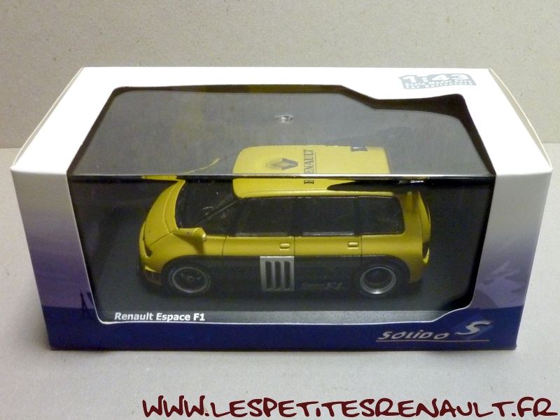 Modèle : Espace F1 Année : 1994 Couleur : Jaune et noire Echelle : 1/43 Fabricant : Solido Référence : S4313901 Collection : Non Matière : Zamak, châssis plastique Série limitée : Non Boitage : Boite cristal + surboite Solido Commentaires : Version dynamique exposée au musée Matra. |