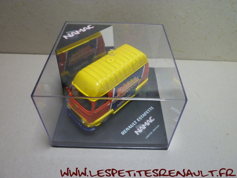 Modèle : Estafette tôlée réhaussée Année : 1960 Couleur : Jaune, orange et bleue Echelle : 1/43 Fabricant : City Référence : CV005C Collection : Non Matière : Zamak, châssis plastique Série limitée : 1500 ex. Boitage : Boite cristal 11x11 Commentaires : Version tôlée réhaussée réalisée pour la bourse de miniatures de Namac |