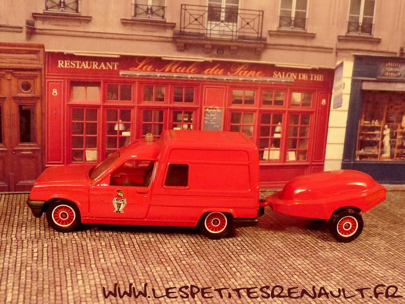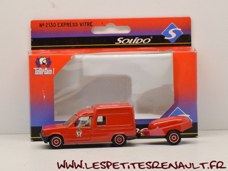 Modèle : Express phase 1 semi-vitré Année : 1988 Couleur : Rouge Echelle : 1/43 Fabricant : Solido Référence : 2130 Collection : TonerGam I Matière : Zamak, châssis plastique Série limité : Non Boitage : Boite carton + plastique Commentaires : Décoration aux couleurs des Pompiers de Paris. Modèle livré avec une remorque type motopompe |