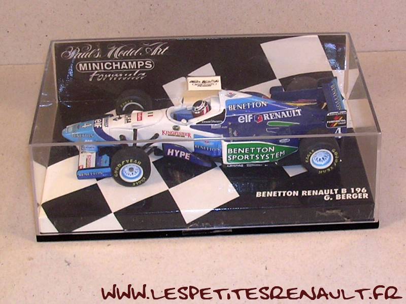 Modèle : Benetton Renault B196Année : 1996 Course : Saison GP F1 Pilote : N° 4 - G Berger Couleur : Bleue et blanche Fabriquant : Minichamps Référence : 430 960004 Collection : -- Matière : Zamak, châssis plastique Série limité : Non Boitage : Boite cristal 8x13 Commentaires : -- |