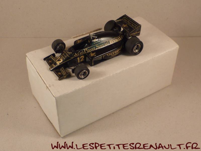 Modèle : Lotus Renault 97 TAnnée : 1985 Course : Saison GP F1 Pilote : N° 12 A Senna Couleur : Noire Fabriquant : HF Référence : HF60 Collection : -- Matière : Zamak Série limité : Non Boitage : Boite carton Commentaires : Kit acheté monté |