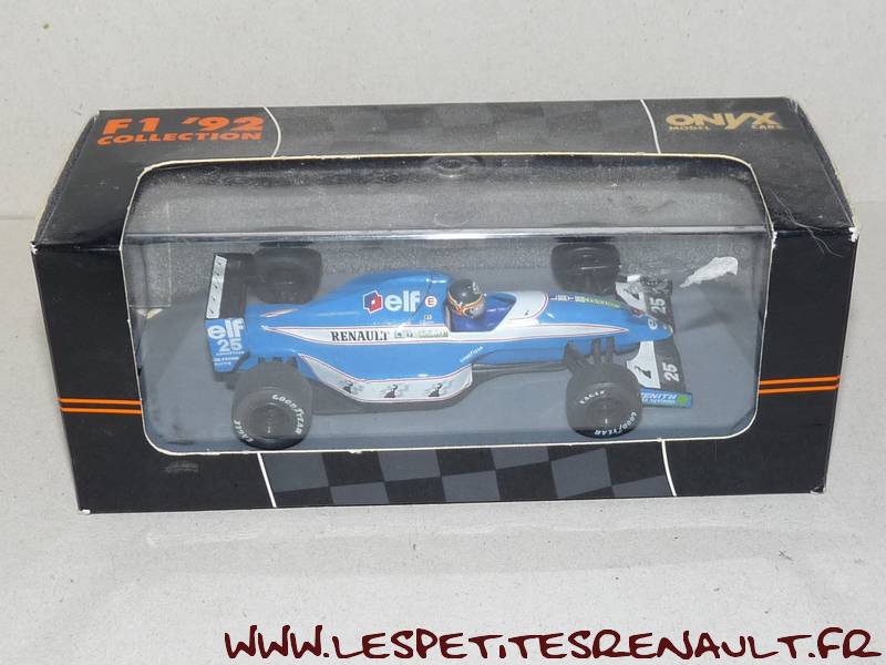 Modèle : Ligier Renault JS 37Année : 1992 Course : Saison GP F1 Pilote : n° 25 - Thierry Boutsen Couleur : Bleue Fabriquant : Onyx Référence : 135 Collection : -- Matière : Zamak, châssis plastique Série limité : Non Boitage : Boite cristal 6x14, surboite carton Onyx Commentaires : -- |