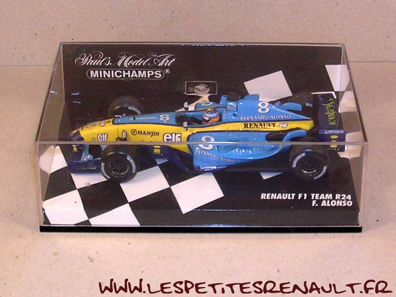 Modèle : Renault R 24Année : 2004 Course : Saison GP F1 Pilote : N° 8 - Fernando Alonso Couleur : Bleu ciel et jaune Fabriquant : Minichamps Référence : 400 040008 Collection : -- Matière : Zamak, châssis plastique Série limité : Non Boitage : Boite cristal 8x13 Commentaires : -- |