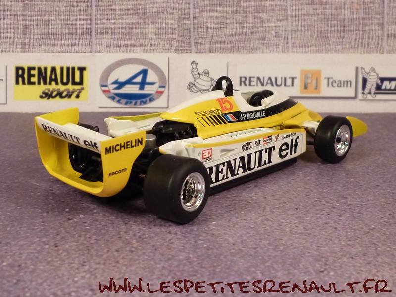 Modèle : Renault RS 11Année : 1979 Course : Saison 1979 Pilote : N°15 J.P. Jabouille Couleur : Jaune, noir et blanc Fabriquant : Norev Référence : 7711575937 Collection : Non Matière : Zamak, châssis plastique Série limité : Non Boitage : Boite carton Commentaires : -- |