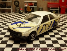 Modèle : Fuego 2L phase 1 Année : 1981 Course : Rallye Equipage : #5 Couleur : Blanche Echelle : 1/43 Fabricant : Solido Référence : 1308 Collection : Non Matière : Zamak, châssis plastique Série limitée : Non Boitage : Boite carton + cristal Commentaires : Décoration imaginaire |