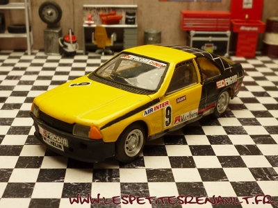 Modèle : Fuego 2L phase 1 Année : 1982 Course : Championnat Supertourisme Equipage : #9, Jacky Haran Couleur : Jaune et noire Echelle : 1/43 Fabricant : Top 43 Référence : 0031 Collection : Non Matière : Zamak, châssis plastique Série limitée : Non Boitage : Boite carton Commentaires : Transkit sur base Solido, décoration Facom-Dinin |