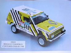 Modèle : Jeep Cherokee Année : 1988 Course : Paris-Dakar Equipage : #349 - Cadi / Douaud Couleur : Noir, jaune et blanc Echelle : 1/43 Fabricant : Original Miniatures Référence : OM44 Collection : Non Matière : Résine Série limité : Non Boitage : Boite carton Commentaires : -- |