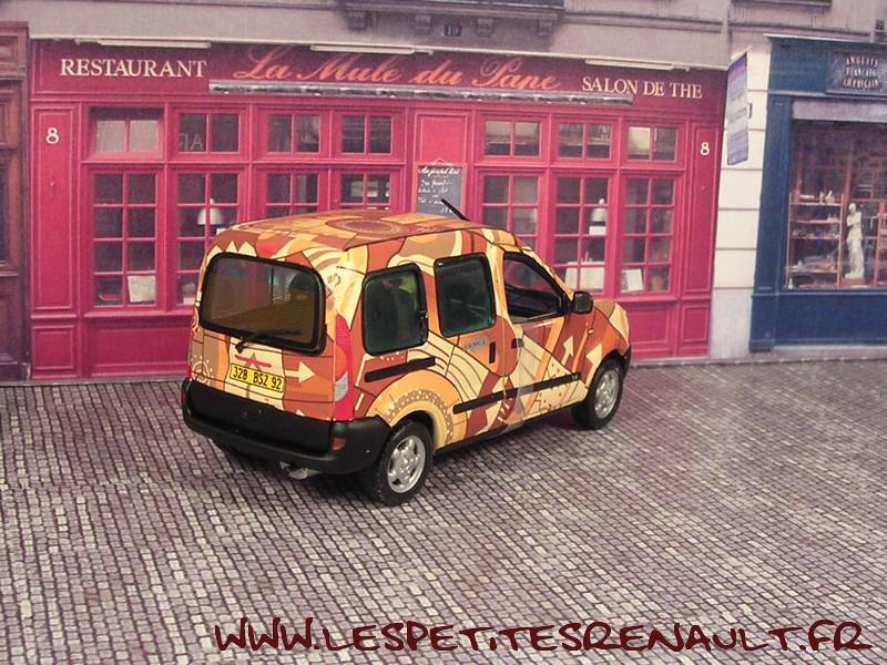 Modèle : Kangoo I phase 1 vitré Année : 1999 Couleur : Beige et marron Echelle : 1/43 Fabricant : Vitesse Référence : VMC99038 Collection : Non Matière : Zamak Série limitée : 1503/2000 Boitage : Boite cristal 11x11, surboite Renault Commentaires : Décoration Pampa Argentine |