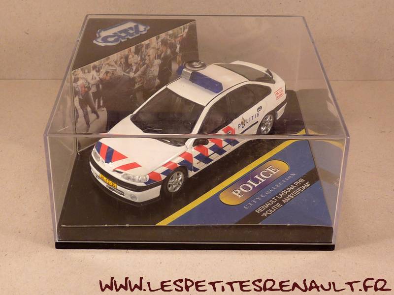 Modèle : Laguna I phase 2 berline Année : 1998 Couleur : blanche Echelle : 1/43 Fabricant : City Référence : CPC99003 Collection : Non Matière : Zamak, châssis plastique Série limitée : 1206/1500 Boitage : Boite cristal 11x11 Commentaires : Version Police d'Amsterdam |
