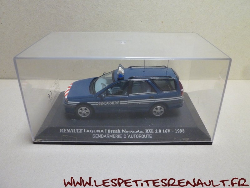 Modèle : Laguna I phase 2 RXE Nevada Année : 1998 Couleur : Bleu marine Echelle : 1/43 Fabricant : Universal Hobbies Référence : 67 Collection : Renault Collection (M6) Matière : Zamak Série limitée : Non Boitage : Boite cristal 8x15 Commentaires : Version Nevada Gendarmerie d'autoroute. |