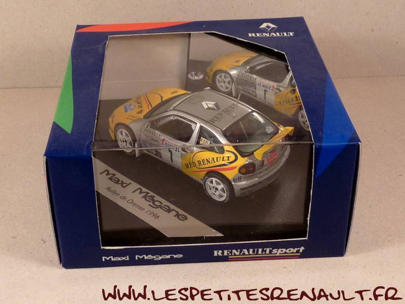 Modèle : Megane I Maxi Année : 1996 Course : Rallye de Orense Equipage : #1 Oriol GOMEZ / Marc MARTY Couleur : Jaune et grise Echelle : 1/43 Fabricant : Vitesse Référence : 7711147614 Collection : Non Matière : Zamak Série limitée : Non Boitage : Boite cristal 11x11, surboite renault sport Commentaires : -- |