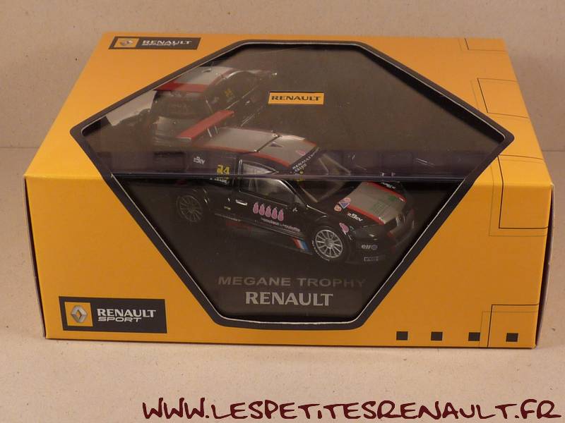 Modèle : Megane II Trophy Année : 2005 Course : Championnat Megane Trophy Equipage : #24 - S. Abadie Couleur : Noire Echelle : 1/43 Fabricant : Norev Référence : 7711419208 Collection : Non Matière : Zamak, châssis plastique Série limitée : Non Boitage : Boite cristal 12x17, Surboite carton jaune Renault Sport Commentaires : Version avec capot arrière amovible |