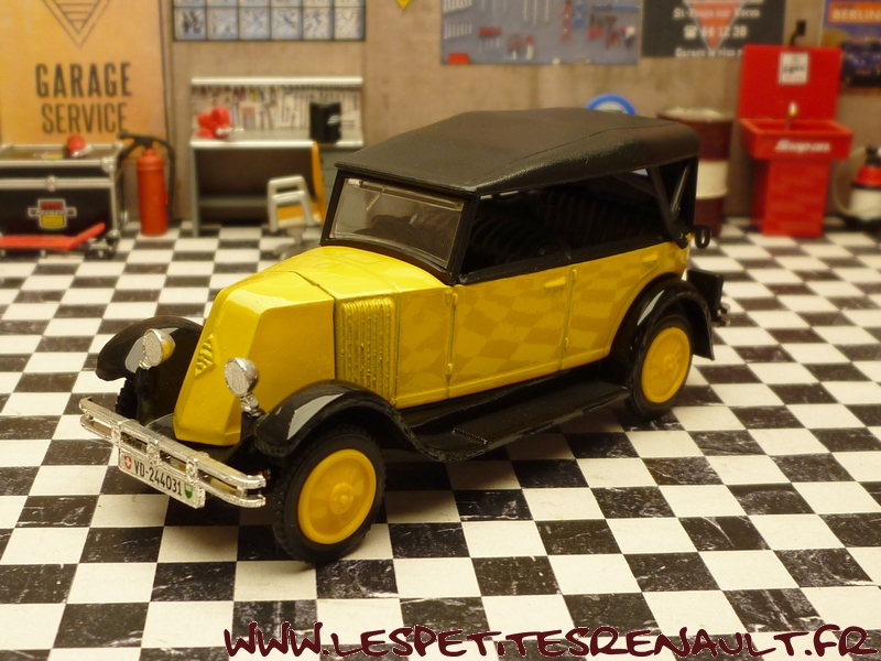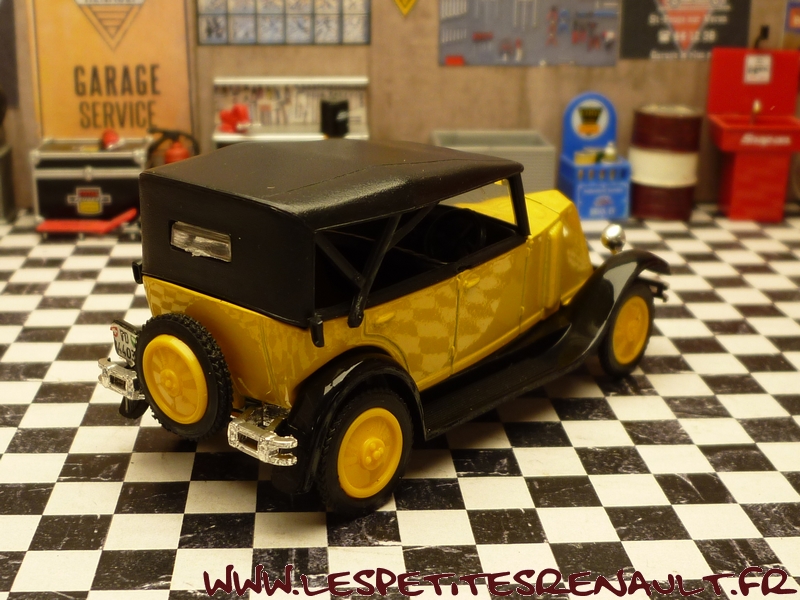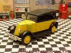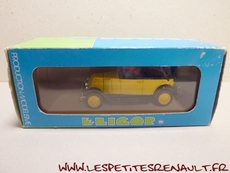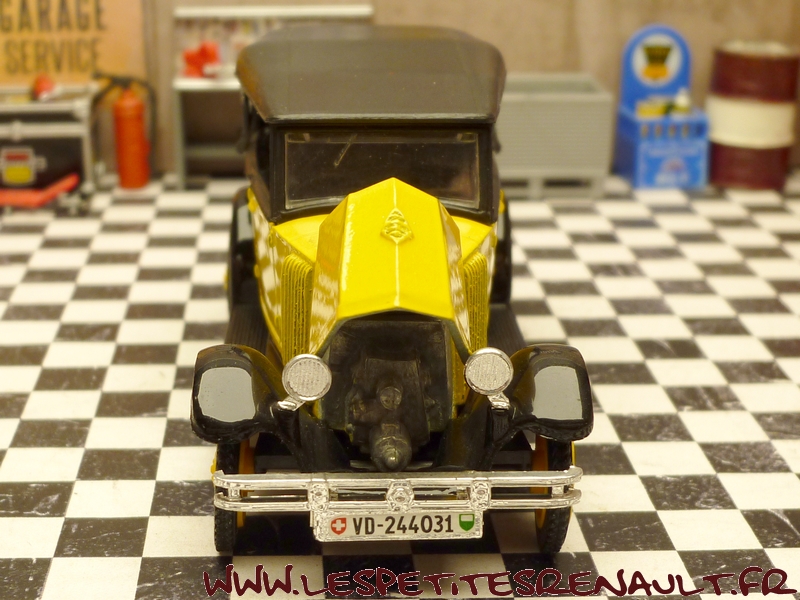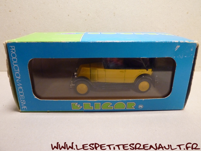 Modèle : NN2 Torpedo Année : 1929 Couleur : Jaune et noire Echelle : 1/43 Fabricant : Eligor Référence : 1040 Collection : Non Matière :Zamak, châssis plastique Série limitée : Non Boitage : Boite cristal 6x15, surboite Eligor Commentaires : Reprise du moule Norev Modèle indiqué comme [Torpédo NN 1927] mais la présence du pare-chocs doubles et les ailes galbées en font un type NN2 de 1929. Version capotée avec ailes noires, caisse jaune et capote noire Modèle épuisé en 1983 et ré-éditée en 1998 sous la référence 100076 Présence d'une immatriculation suisse |