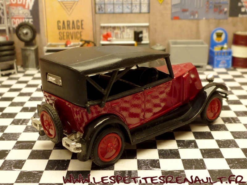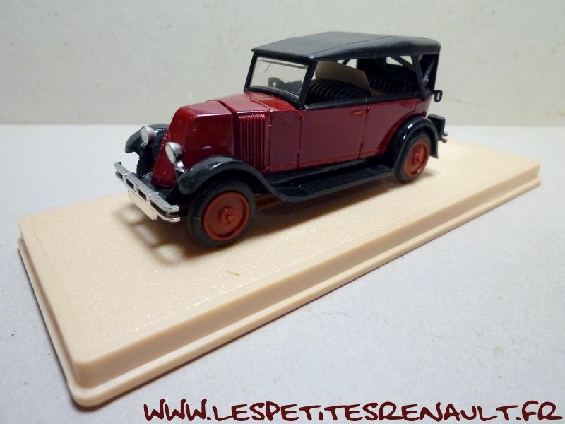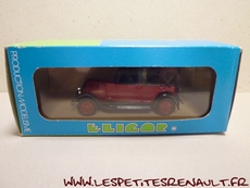 Modèle : NN2 Torpedo Année : 1929 Couleur : Bordeaux et noire Echelle : 1/43 Fabricant : Eligor Référence : 1040 Collection : Non Matière :Zamak, châssis plastique Série limitée : Non Boitage : Boite cristal 6x15, surboite Eligor Commentaires : Reprise du moule Norev Modèle indiqué comme [Torpédo NN 1927] mais la présence du pare-chocs doubles et les ailes galbées en font un type NN2 de 1929. Version capotée avec ailes noires, caisse jaune et capote noire Modèle épuisé en 1983 et ré-éditée en 1998 sous la référence 100076 Présence d'une immatriculation non posée 208 RF 6 |